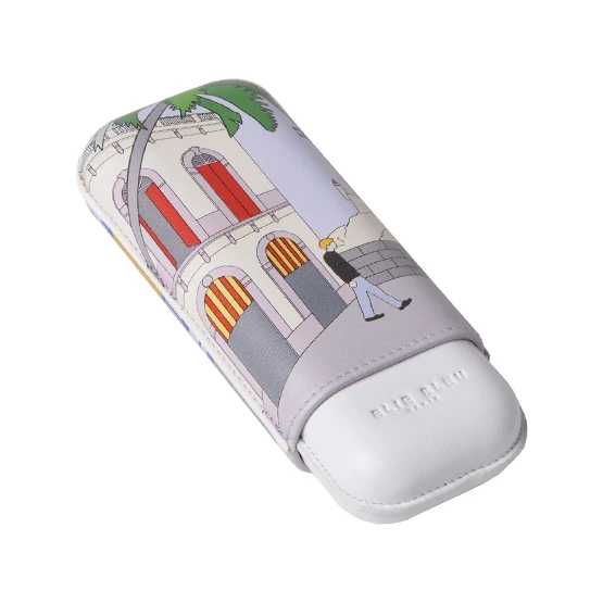This leather cigar case is part of Elie Bleu’s Casa Cubana range; designed to capture the spirit and energy of Cuba, and its thriving cigar industry, through the beautiful architecture seen across the country. Beautiful art combines with fine leather to produce a vibrant cigar case that is both stylish and functional. A fitting case to carry the finest Cuban cigars.