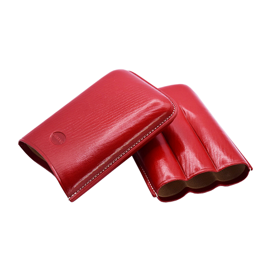 Red leather cigar case for 3 Robusto/Edmundo size cigars.