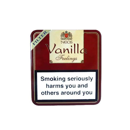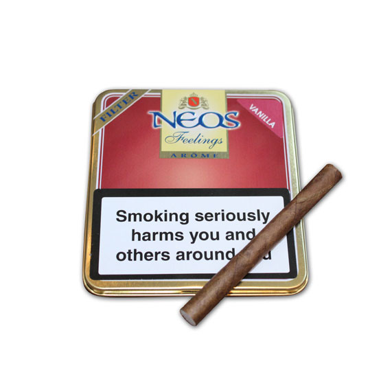 The Neos Feelings Red Vanilla Filtered Cigars are produced from a blend of Burley and Virginia, which have been infused with an aromatic vanilla flavour before being finished with the highly sort after Java Besuki wrapper, which adds even more flavour and character to these cracking miniature cigars. n nThe Neos Feelings Red Vanilla Filtered Cigars are a mild filtered cigar, which are ideal for a day time smoke or whenever the feeling arises. They do not require cutting and can be smoked straight out of the tin. n nThe Neos feelings are produced from a blend of Burley and Virginia, which have been infused with an aromatic Vanilla flavour before being finished with the highly sort after Java Besuki wrapper, which adds even more flavour and character to these cracking miniature cigars.