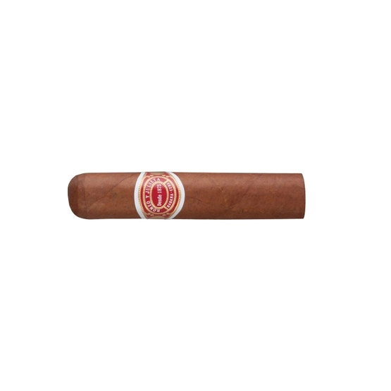 The Romeo y Julieta Petit Royales Cigar is a short yet flavorful Cuban smoke, measuring 3 5/8 inches with a 47-ring gauge, offering a medium-bodied experience. Handcrafted with premium Vuelta Abajo tobacco, it delivers a refined profile of cedar, earth, and toasted almonds, followed by floral notes, sweet spices, creamy vanilla, roasted coffee, cocoa, and subtle leather. Despite its compact size, it provides a smooth draw, even burn, and rich complexity, making it an excellent choice for a quick yet sophisticated smoking experience.