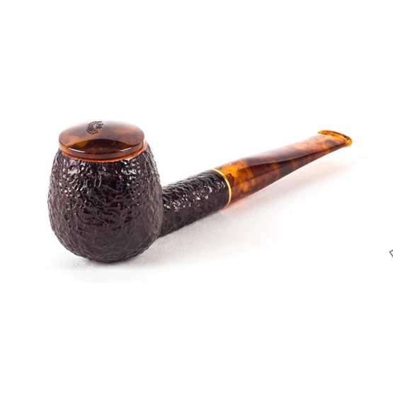 The Savinelli Tortuga 626 is a classic full bent apple 6mm smoking pipe, very similar to the 602 with a shallower bowl to reduce the weight. The Tortuga has a stunning black, Sandblast finish on the bowl and contrasting tortoise shell effect, tapered, mouthpiece. Smooth, burgundy finishing. Model 626 fully personifies all the Apple style elegance. Its soft lines and dimensions make it an aesthetically and well-proportioned pipe. Comes with an ash cap included and take the Savinelli 6mm balsa wood filter, Savinelli include an adaptor for those who prefer a totally unfiltered smoke.