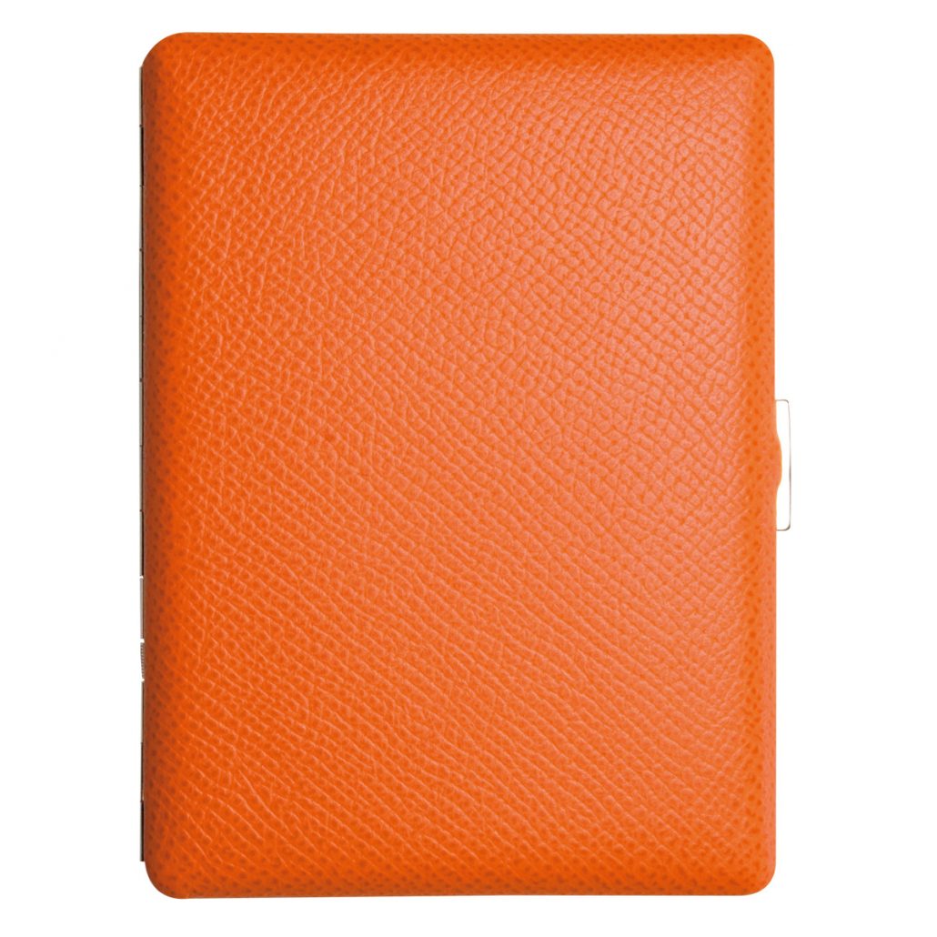 This elegant cigarette case from Tsubota Pearl can hold 9 superking cigarettes, or 12 regular cigarettes. These fine cigarette cases are made in Japan using Noblesse calf leather and brass.